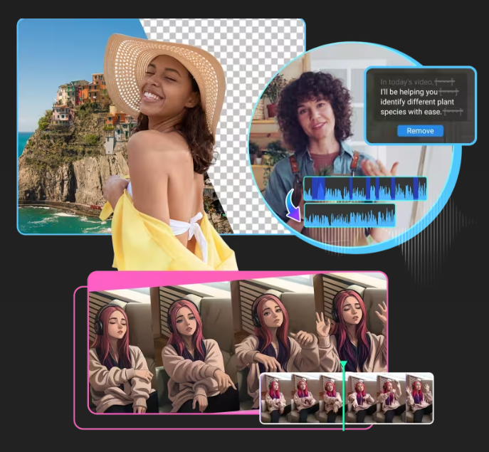 - AI 기반 자동 자막 생성 및 텍스트 기반 편집 기능