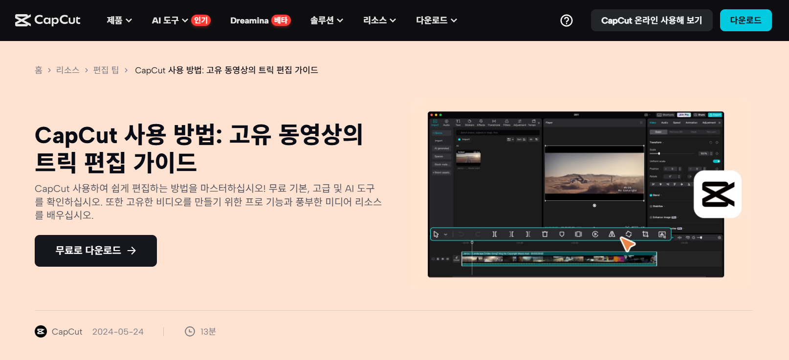 (관련글) 캡컷 PC버전 템플릿 적용 방법, 싱크 안맞음, 배경 제거 기능