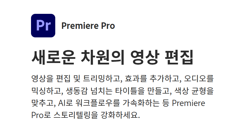 어도비 프리미어 프로(Adobe Premiere Pro)는 영화, 방송, 유튜브 등 모든 분야의 전문가들이 선택하는 편집 툴입니다. 특히 After Effects, Photoshop과 같은 Adobe 제품군과의 연동성이 뛰어나 종합적인 콘텐츠 제작 워크플로우를 구축할 수 있습니다.