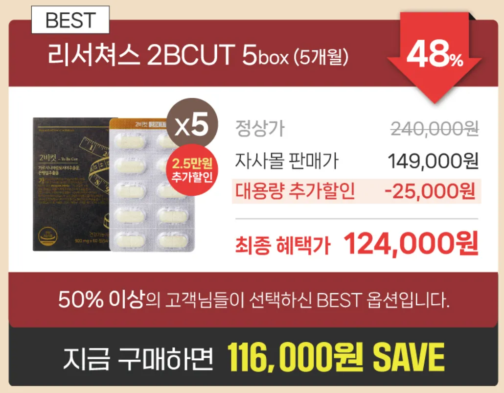 중년에 접어들면서 늘어나는 뱃살 때문에 고민이 많으시죠? 운동과 식단 조절만으로는 한계를 느끼는 분들을 위해 등장한 것이 바로 투비컷(2BCUT)입니다. 리서쳐스 브랜드에서 출시된 이 건강기능식품은 식약처 인증을 받은 가르시니아 캄보지아 성분으로 체지방 감소에 도움을 준다고 알려져 있습니다. 과연 실제 효과는 어떨까요? 성분부터 후기까지 투비컷의 모든 것을 자세히 알아보겠습니다.