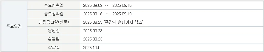 | 일반 청약일 | 2025년 9월 18일 (목) ~ 19일 (금) |