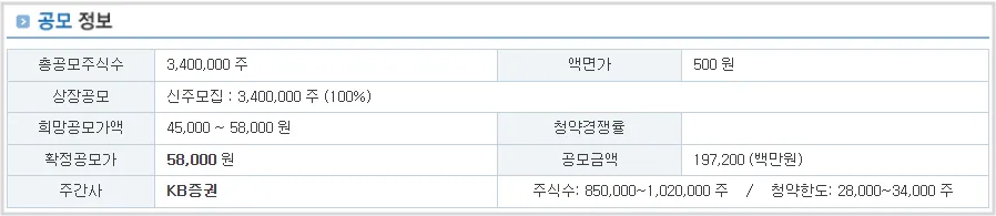 | 확정 공모가 | 58,000원 |
